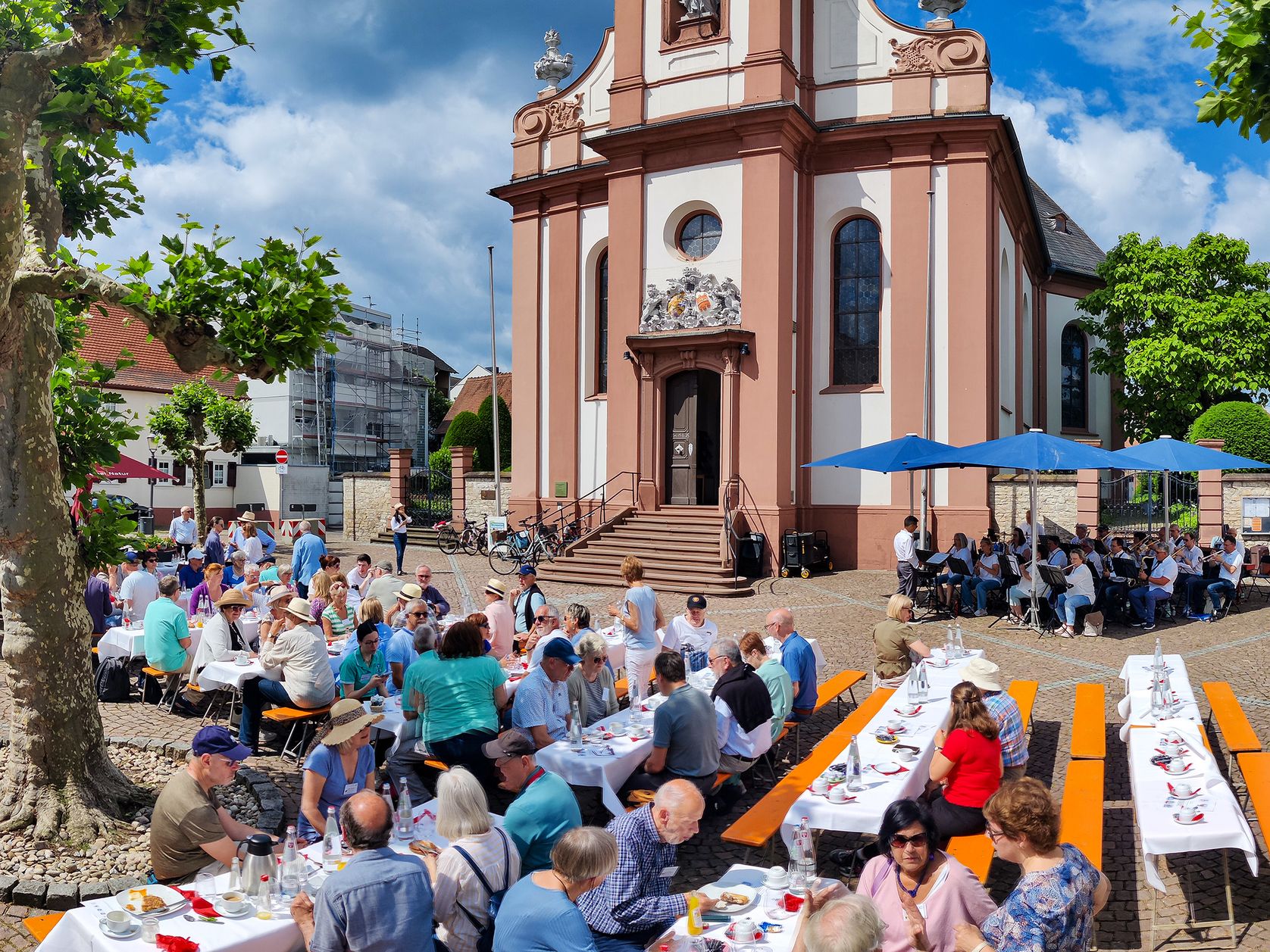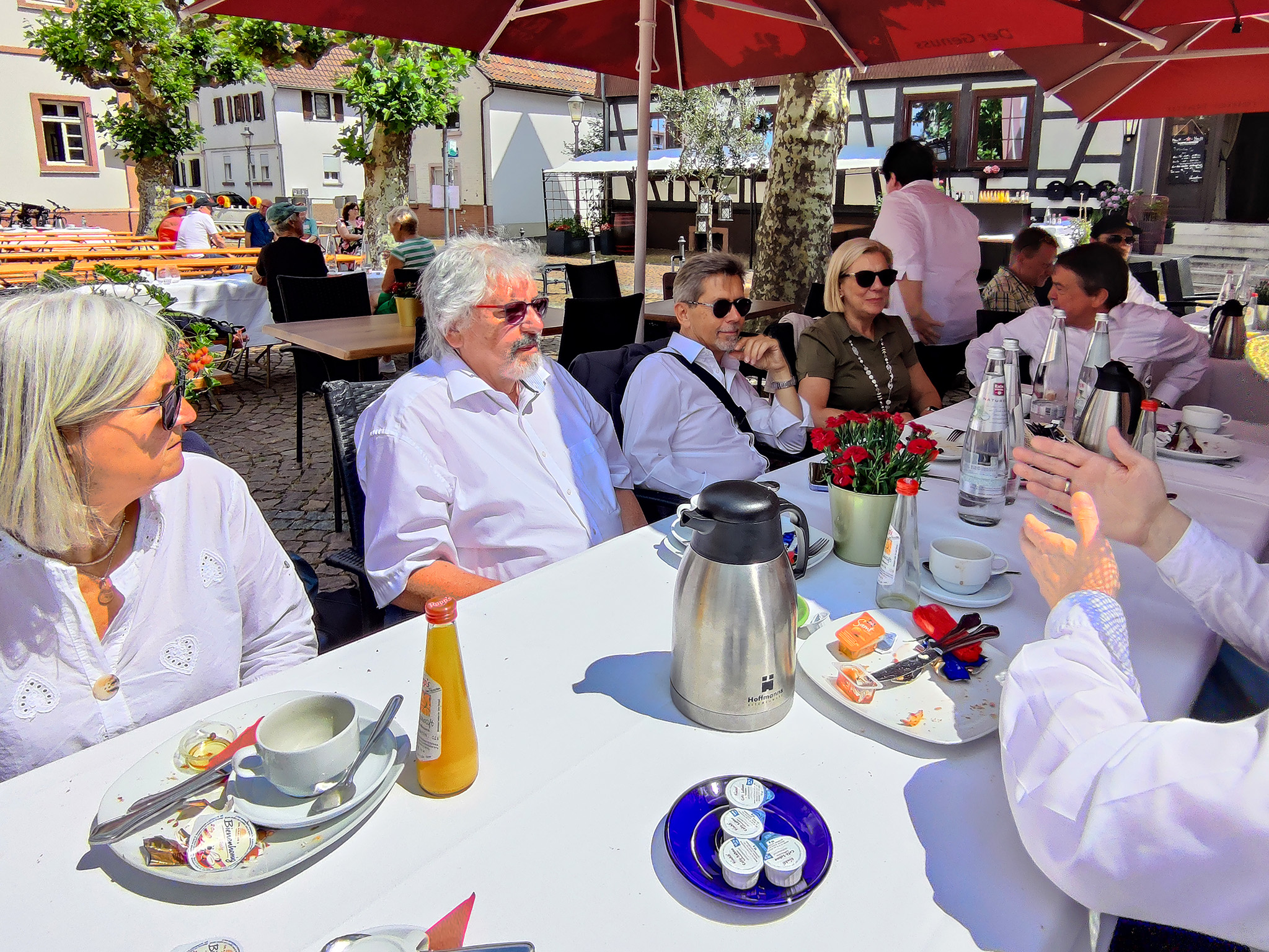 In jüngster Vergangenheit hat die Stadt Heusenstamm den Wunsch geäußert, die Festlichkeiten musikalisch von der STAKA begleiten zu lassen. Diese Anfrage wurde vom Vorstand unseres Orchesters sehr positiv aufgenommen. So folgten 20 Musikerinnen und Musiker dem Aufruf, am Freitag, den 30. Mai 2025, um 10 Uhr bei einem Brunch für das Wohl der Gäste aus den Partnerstädten mit frischer, spritziger Musik für eine festliche Atmosphäre zu sorgen.
