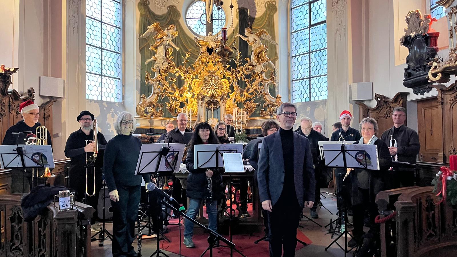 Besonders macht das Konzert auch die Atmosphäre der Kirche St. Cäcilia, die Mitte des 18. Jahrhunderts nach Plänen des Barockbaumeisters Balthasar Neumann errichtet wurde und als eines der bedeutendsten barocken Bauwerke Heusenstamms gilt. Die Kirche ist der heiligen Cäcilia, der Schutzpatronin der Kirchenmusik, geweiht – ein passender Ort also für ein Konzert, bei dem Bläserklang und Weihnachtsmusik im Mittelpunkt stehen. In Verbindung mit der festlichen Beleuchtung und der adventlichen Dekoration entstand so ein stimmungsvoller Rahmen, der „Swinging Christmas“ zu einem besonderen musikalischen Höhepunkt im Heusenstammer Advent machte.