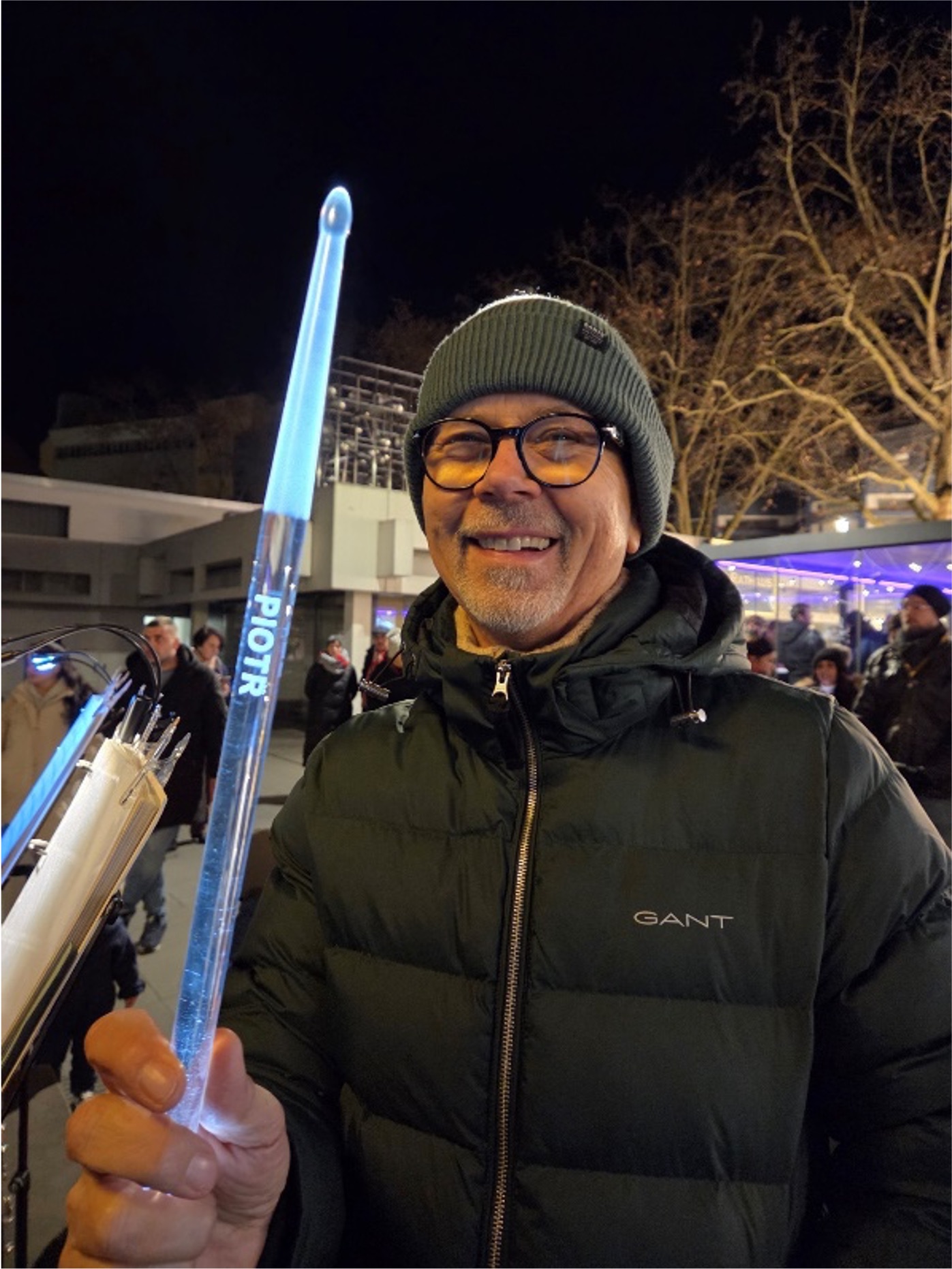 Piotr lässt sich, als professioneller Dirigent, von unseren schrägen Tönen nicht die Laune verderben – Stimmungsprobleme kennt er als Schlagzeuger und Dirigent nicht und als Darth Vader mit Lichtschwert schwebt er sowieso über allem….